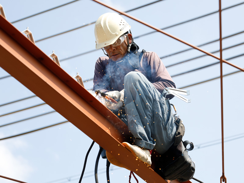 鉄骨造の特長は安全性の高さ。当社の鉄骨加工技術によって、阪神・淡路大震災クラスの地震にも耐えうる耐震性を備えています。